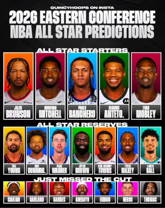 北京时间10月11日晚,美国媒体Quincy Hoops预测了25-26赛季东西部全明星的入选情况,还有东西部可能落选的顶级选手。
